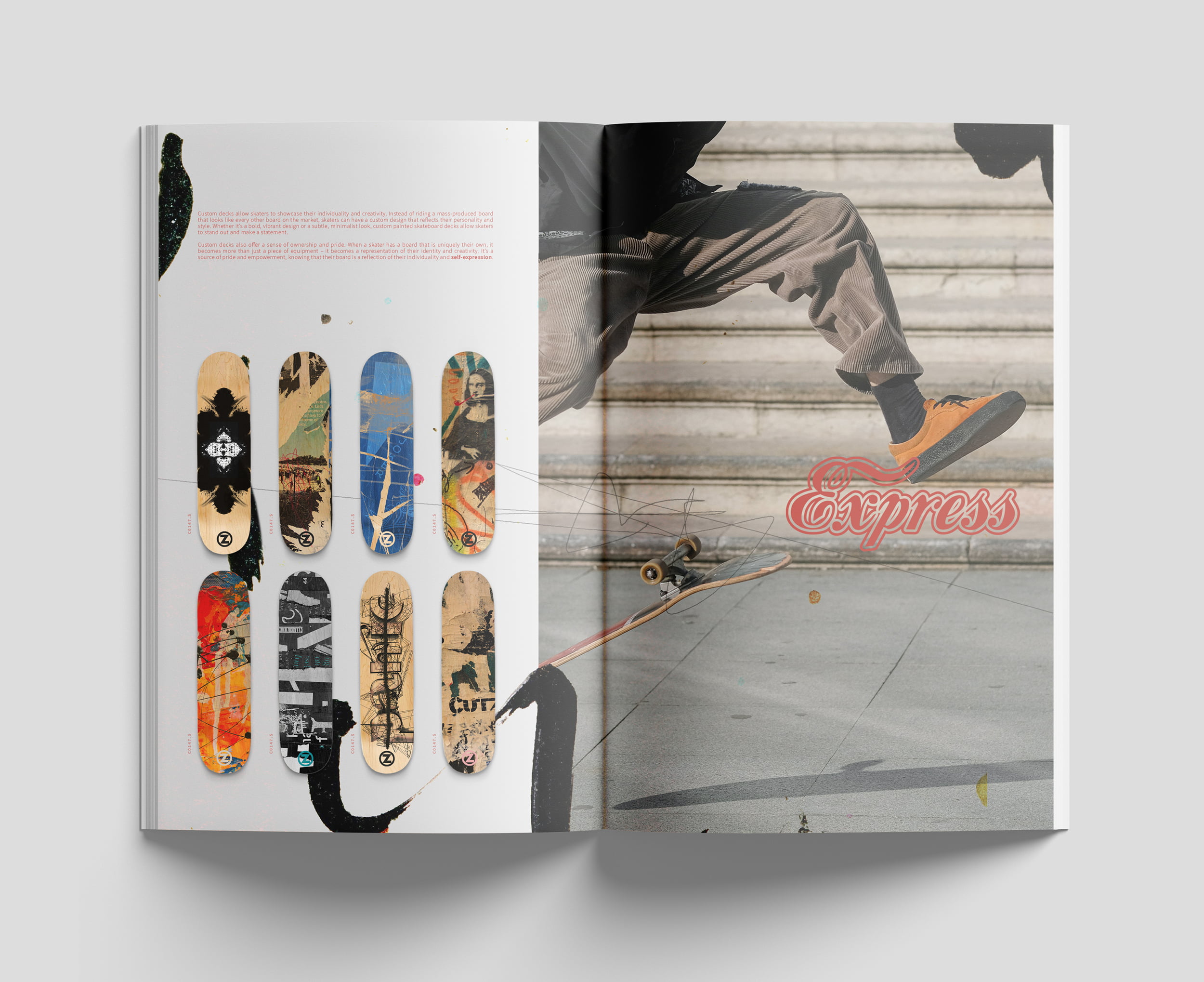 The board canvas is distinctive, inspiring, and enhances each artwork, functioning almost like a picture frame that showcases the art wherever it is utilised; hand-drawn, graffiti-inspired, and refined digital art graphics were employed to craft each design, making it unique to every individual who selected it.